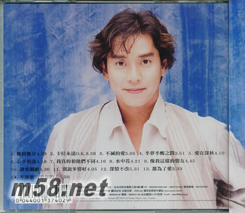 傳奇經典(m58.net) 譚詠麟,第一位在臺灣受到廣大歡迎的香港巨星,他用歌聲與瀟灑的笑容擄走了大眾的心,優異的唱腔,高辨識度的嗓音再加上廣東腔的口音,為許多歌曲添加了他特的風味,半夢半醒之間,卡拉永遠OK,水中花等14首你一定會唱的歌曲,記得譚詠麟,記得那段有香港天王陪伴的時光。