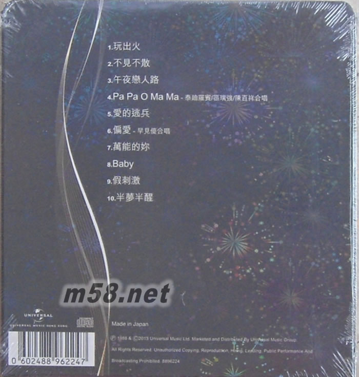 01. 玩出火 02. 不見不散 03. 午夜戀人路 04. PA PA O MA MA 05. 愛的逃兵 06. 偏愛 07. 萬能的妳 08. BABY 09. 假刺激 10. 半夢半醒