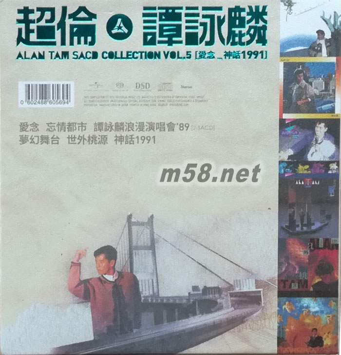 超倫(5)譚詠麟 第五集 ALAN TAM SACD BOX COLLECTION (6SACD套裝)(m58.net) 超倫.譚詠麟 ALAN TAM SACD BOX COLLECTION VOL.5 [愛念…神話1991] 限量愛藏禮盒 連同產品証明書+2017全新設計海報.盒內6張SACD(包括1張雙碟) 每張均設有獨立編號 環球為阿倫 樣樣做到好 (1) SACD 愛念 (2) SACD 忘情都市 (3) SACD譚詠麟浪漫演唱會’89 (2CD Set) (4) SACD夢幻舞臺 (5) SACD世外桃源 (6) SACD神話1991
