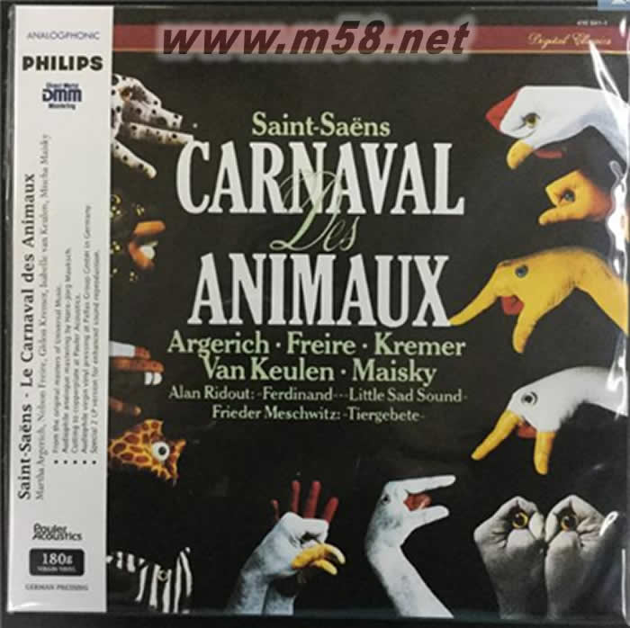 圣桑 動物狂歡節Saint-Saens Chamber Works 黑膠(m58.net) 阿格里奇(Martha Argerich,1941年生于布宜諾斯艾利斯),阿根廷鋼琴家,,5歲首次登臺演出,8歲多次參加公開演出莫扎特、貝多芬的鋼琴協奏曲。 1955-1957年,在維也納師從古爾達,后又在日內瓦拜帕蒂夫人和馬加洛夫為師。 1957年,16歲時在意大利波爾薩諾舉行的布索尼國際鋼琴比賽中獲第一名,同年又在日內瓦國際鋼琴比賽中獲一等獎。 1960年師從米凱朗杰里繼續深造,1964年又跟阿什肯納奇短期學習。 1965年在華沙第七屆國際肖邦鋼琴比賽中獲第一名,波蘭唱片公司在現場錄制了她演奏的肖邦第一鋼琴協奏曲的唱片,令其名揚全球。 1967年首次到美國演出,錄制了肖邦b小調鋼琴奏鳴曲。1968—1969年在阿巴多指揮下與柏林愛樂樂團和倫敦交響樂團協作,錄制了普羅科菲耶夫第3鋼琴協奏曲、拉威爾G大調鋼琴協奏曲和李斯特bE大調鋼琴協奏曲。 1977—1978年德國唱片公司邀請她錄制了多部作品。 阿格里希的演奏風格浪漫豪放,被人們稱為“音樂的女大祭司”;雖然她的演奏充滿吉普賽人的奔放熱情,但有時也具有陰沉憂郁的格調,表現出一種內在、沉思的詩意。她的技巧過人,音色鏗鏘有力,光彩奪人,不愧為當代杰出的女鋼琴家;她喜愛舒曼、肖邦的作品,同時也演奏現代作曲家巴托克、斯特拉文斯基等人的樂曲