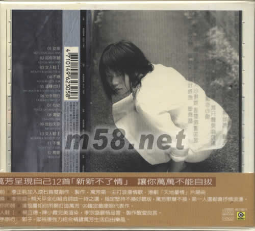 價格為估,以實到貨為準! 萬芳不換(臺灣限量版)(m58.net) 你我之間一輩子不換的萬有引力 人前是萬芳 現(xiàn)在是萬芳 未來還是萬芳 李宗盛 李正帆 吳旭文 黃建昌 超級四大制作魅力聯(lián)手 不換萬芳情歌如假包換 1999再譜抒情浪漫史詩 特別收錄:[從前]1999新新不了情 萬人迷惘KTV傳唱首選 經(jīng)典音樂愛情故事[從前]MUSIC VIDEO 完整版VCD 萬芳呈現(xiàn)自己12首[新新不了情]讓你萬萬不能自拔 從前*李正帆加入滾石首度創(chuàng)作、制作,萬芳第一主打浪漫情歌。港劇[天地豪情]片尾曲 不換*李宗盛+熊天平全心組合詞曲一時之選,指定堅持不換好聽版,萬芳歌聲不換,第一人選都會抒情浪漫。 如你所愿*潘協(xié)慶如你所愿打造萬芳 99鐵定最哽咽代表作。 女人鞋I*楊立德+陳小霞完美渲染,李宗盛嚴格品管、制作醒愛良言。 分手旅行*郭子+鄔裕康強力組合精鑄萬芳生活自由樂風。