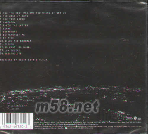 01 HOW THE WEST WAS WON AND WHERE IT GOT US 02 THE WAKE-UP BOMB 03 NEW TEST LEPER 04 UNDERTOW 05 E-BOW THE LETTER 06 LEAVE 07 DEPARTURE 08 BITTERSWEET ME 09 BE MINE 10 BINKIY THE DOORMAT 11 ZITHER 12 SO FAST.SO NEMB 13 LOW DESERT 14 ELECTROLITE