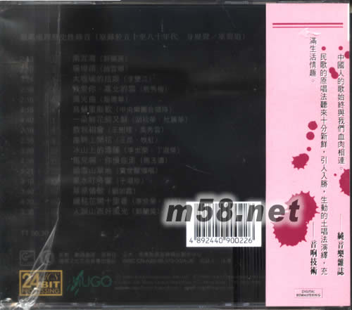 [1] 南泥灣(郭蘭英) 3:12 [2] 珊瑚頌(趙云卿) 3:54 [3] 大板城的姑娘(李雙江) 5:46 [4] 我愛你,塞北的雪(殷秀梅) 3:26 [5] 漁光曲(鄒德華) 3:39 [6] 烏蘇里船歌(中央樂團合唱隊) 3:56 [7] 一朵鮮花鮮又鮮(胡松華、杜麗華) 3:46 [8] 敖包相會(王樹理、吳秀云) 3:58 [9] 崖畔上開花(王昆、牧虹) 3:28 [10] 冰山上的雪蓮(李世榮、于淑榮) 5:26 [11] 馬兒啊,你慢些走(馬玉濤) 5:28 [12] 過雪山草地(賈世駿) 3:27 [13] 泉水叮咚響(于淑珍) 3:17 [14] 草原情歌(劉如霞) 3:15 [15] 緬桂花開十里香(李世榮、舒超) 3:18 [16] 人說山西好風光(郭蘭英)