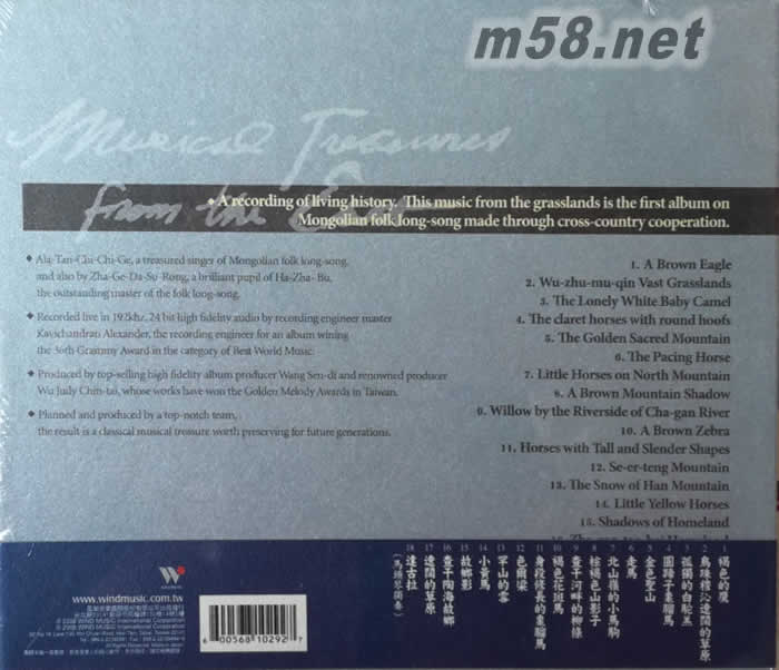 蒙古長調民歌 阿拉坦其其格 扎格達蘇榮專輯背面圖片
