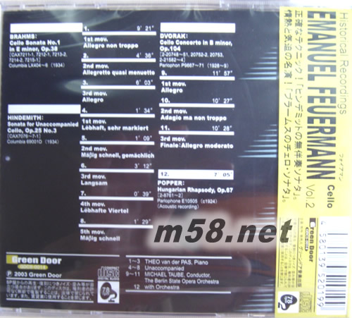 FEUERMANN 費爾曼 HISTORICAL RECORDINGS大提琴 VOL2專輯背面圖片