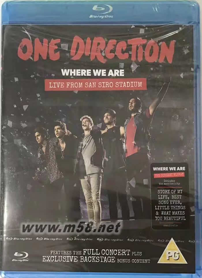 價格為估,以實到貨為準! Where We Are: Live From San Siro Stadium Blu-ray藍光DVD(m58.net) 英國超人氣男團One Direction, 最新2014演唱會LIVE DVD及Blu-ray. 組合於今年4月份至10月份跨越美州及歐州共演出大型演唱會超過70場,總入場人次突破3百萬。此演場會影像 收錄6月28-29日於意大利米蘭市超大型場館San Siro Stadium之演出共23首歌曲, 特別追加幕后花絮.