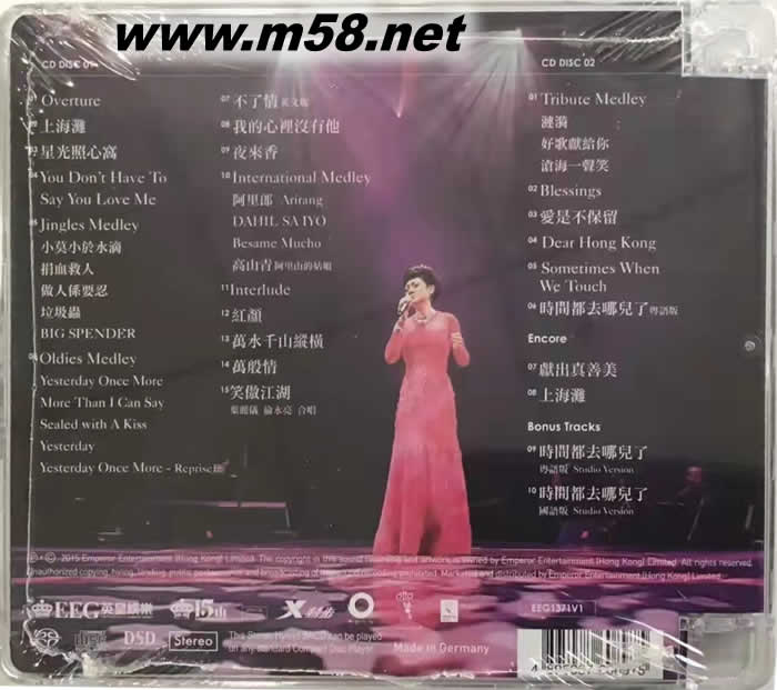 葉麗儀 45年香港情演唱會 SACD 德國限量版專輯背面圖片