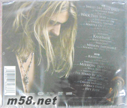DISK 1 CD 1. Smells Like Teen Spirit ~西雅圖搖滾勁旅Nirvana/超脫合唱團定義90世代的另類搖滾國歌 2. November Rain ~重搖滾隊伍Guns N` Roses/槍與玫瑰合唱團1992年全美流行榜#3抒情搖滾史詩 3. The 5th ~貝多芬第五號交響曲-命運交響曲 4. Walk This Way feat. Orianthi ~重搖滾名團Aerosmith/史密斯飛船1977年全美流行榜#10聲猛大作 5. Live And Let Die ~披頭四團員保羅麥卡尼與The Wings/翅膀樂團為007系列電影「生死關頭」灌唱的主題曲 6. Vivaldi vs. Vertigo ~韋瓦第古典名曲混搭U2合唱團英國金榜冠軍曲〞Vertigo〞 7. Master Of Puppets ~Metallica/金屬製品合唱團入選美國VH1音樂頻道史上最偉大重金屬搖滾歌曲第3名作品 8. 80`s Anthem ~大衛蓋瑞原創樂曲 9. Toccata ~巴哈名曲〞觸技曲〞,迪士尼經典動畫片「幻想曲」主題音樂之一 10. Asturias ~西班牙作曲家Isaac Albéniz/阿爾貝尼茲19世紀名曲 11. Kashmir ~Led Zeppelin/齊柏林飛船合唱團1975年經典名曲 12. Rock Symphony ~大衛蓋瑞原創樂曲 13. Peer Gynt ~挪威作曲家Grieg/葛利果根據Ibsen/易卜生創作的歌劇譜寫而成的皮爾金組曲 14. Mission Impossible ~1960年諜報動作影集「虎膽妙算」,湯姆克魯斯主演系列電影「不可能的任務」主題音樂 15. Rocking All Over The World ~美國南方搖滾名團C.C.R./清水合唱團主唱約翰佛格堤1975年名曲 DISK 2 DVD 1. Smells Like Teen Spirit ~西雅圖搖滾勁旅Nirvana/超脫合唱團定義90世代的另類搖滾國歌 2. November Rain ~重搖滾隊伍Guns N` Roses/槍與玫瑰合唱團1992年全美流行榜#3抒情搖滾史詩 3. The 5th ~貝多芬第五號交響曲-命運交響曲 4. Walk This Way feat. Orianthi ~重搖滾名團Aerosmith/史密斯飛船1977年全美流行榜#10聲猛大作 5. Live And Let Die ~披頭四團員保羅麥卡尼與The Wings/翅膀樂團為007系列電影「生死關頭」灌唱的主題曲 6. Vivaldi vs. Vertigo ~韋瓦第古典名曲混搭U2合唱團英國金榜冠軍曲〞Vertigo〞 7. Master Of Puppets ~Metallica/金屬製品合唱團入選美國VH1音樂頻道史上最偉大重金屬搖滾歌曲第3名作品 8. 80`s Anthem ~大衛蓋瑞原創樂曲 9. Toccata ~巴哈名曲〞觸技曲〞,迪士尼經典動畫片「幻想曲」主題音樂之一 10. Asturias ~西班牙作曲家Isaac Albéniz/阿爾貝尼茲19世紀名曲 11. Kashmir ~Led Zeppelin/齊柏林飛船合唱團1975年經典名曲 12. Rock Symphony ~大衛蓋瑞原創樂曲 13. Peer Gynt ~挪威作曲家Grieg/葛利果根據Ibsen/易卜生創作的歌劇譜寫而成的皮爾金組曲 14. Mission Impossible ~1960年諜報動作影集「虎膽妙算」,湯姆克魯斯主演系列電影「不可能的任務」主題音樂 15. Rocking All Over The World ~美國南方搖滾名團C.C.R./清水合唱團主唱約翰佛格堤1975年名曲