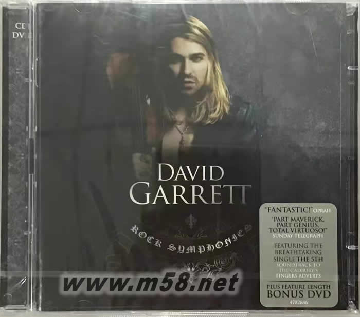 Rock Symphonies搖滾交響夢(CD+DVD精裝盤)(m58.net) 顛覆一般人對小提琴家的刻板印象,David Garrett高挑的身材和出色外型,就像是流行樂壇的搖滾巨星。自出道以來,David Garrett分別與搖滾樂團及古典管弦樂團合作,淋漓展現他在傳統古典樂與跨界音樂的才華,也為新世代樂迷開創了古典音樂的新風貌,贏得史坦(Isaac Stern)、曼紐因(Yehudi Menuhin)、韓岱爾(Ida Haendel)等小提琴傳奇大師的齊聲讚美。2009年,Garrett展開全球巡迴,所到之處皆吸引了爆滿樂迷;在德國轉播2010年世足盃決賽的暖身演唱會上,Garrett更取代了世界三大男高音,成為此盛會的表演嘉賓。 全新大碟【Rock Symphonies】,Garrett與合作多年的伴奏樂團以及布拉格市愛樂管弦樂團通力合作,重新賦予他最喜愛的搖滾樂團U2、Nirvana、Metallica、Aerosmith的經典國歌,以及韋瓦第與貝多芬等古典名曲全新的聽覺驚喜,在他綻放神采飛揚的小提琴演奏技巧的同時,也精準的抓住樂曲精神,豐富了樂曲震撼人心的力量。像是在"Vivaldi vs. Vertigo"一曲中把玩韋瓦第的古典樂曲與U2合唱團的"Vertigo",或是藉由詮釋Nirvana樂團的90世代國歌"Smells Like Teen Spirit"、以及經典名團Led Zeppelin的不朽金曲"Kashmir"等作品,來挖掘存在於古典樂與搖滾樂之間的和諧共鳴。他也特地邀請在麥可杰克森演唱會電影「未來的未來」中備受矚目的新世代吉他搖滾歌手Orianthi,共同演繹重搖滾名團Aerosmith的傳奇大作"Walk This Way"。此外,Bonus DVD部份更送上12首精彩演出畫面,這絕對是值得您珍藏的影音饗宴。