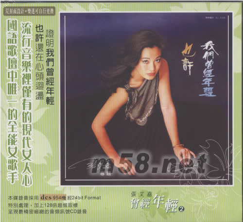 價格為估,以實到貨為準! 也許(曾經年輕2)(m58.net) 國語歌壇中唯一的全能女歌手 流行音樂里僅有的現代女人心 雙封面設計 樂迷可自行更換 本碟錄音采用dcs 954機 經24bit Format特別處理,加上128倍超頻取樣 呈現最精密細致的音頻訊號CD錄音 也許 還在心頭回蕩 證明我們曾經年輕