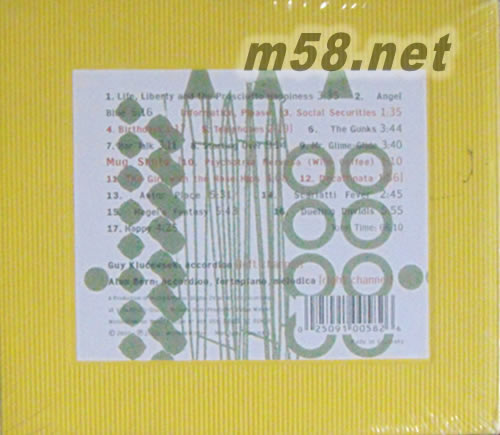 1. Life, Liberty and the Prosciutto Happiness [Klucevsek] 2. Angel Blue [Bern] 3.-5. Information, Please [Bern] Social Securities/Birthdays/Tel. 6. The Gunks [Klucevsek] 7. Bar Talk [Klucevsek] 8. Starting Over [Bern] 9. Mr. Glime-Glide [Klucevsek] 10.-12. Mug Shots [Klucevsek] Psychotria Nervosa [Wild Coffee] The Girl with the Rose Hips Decaffinata 13. Astor Place [Klucevsek] 14. Scarlatti Fever [Bern] 15. Hegel’s Fantasy [Bern] 16. Dueling Dovidls [Bern] 17. Happy [Bern] total time: 66:10