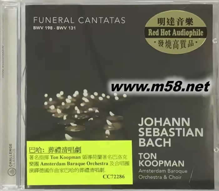 巴赫 葬禮清唱劇 FUNERAL CANTATAS BWV 198 BWV 131(m58.net) Challenge Classics 是荷蘭知名唱片品牌 - Challenge Records 旗下專注于古典音樂制作的子廠牌。 Challenge Records由Hein van de Geyn、Anne de Jong和Joost Leijen1994年成立于荷蘭阿默斯福特,是一家在專輯制作和營銷方面敢于創(chuàng)新進取的公司。他們的目標是為發(fā)燒友們提供質(zhì)量一流的專輯產(chǎn)品。在他們的網(wǎng)站上,音樂愛好者們可以找到關于藝術(shù)家、新上專輯的等信息的介紹。 多年來,Challenge Records一直致力于制作、營銷荷蘭國內(nèi)外的藝術(shù)家們所演奏的高品質(zhì)的音樂。作為一家獨立的公司,他們主要發(fā)行爵士樂和古典音樂,但是世界音樂、布魯斯、靈魂樂和流行樂等音樂風格也在其經(jīng)營范圍之內(nèi)。除了Challenge自己的廠牌,他們也負責德國廠牌ECM在荷蘭市場的銷售工作,以及如Intuition、ACT、Caprice、Chesky Records、Stunt Records、Skip Records和Storyville等其他眾多廠牌的發(fā)行工作。 今日的Challenge Records對于未來的發(fā)展充滿信心。不論是藝術(shù)家水平和他們所錄制的音樂的質(zhì)量,還是在各領域都盡職盡責、熱情奉獻的專業(yè)團隊,Challenge Records在各個方面都代表著最高水準。