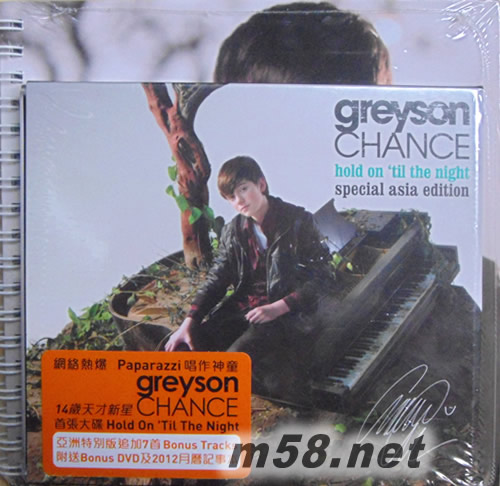 價格為估,以實到貨為準(zhǔn)! Hold On 'Til The Night (Asia Tour Edition) 亞洲特別版(CD + DVD)(m58.net) 本年力谷新人 GREYSON CHANCE 亞洲特別版 追加7首Bonus Tracks 附送Bonus DVD及2012月歷記事本 (送完即止) Greyson于8歲起開始學(xué)習(xí)鋼琴,并有學(xué)習(xí)三年正規(guī)鋼琴課堂,但他在成名之前沒有接受過任何正規(guī)聲樂訓(xùn)練。Greyson的音樂深受Lady GaGa及克莉絲汀·阿奎萊拉影響。另外,格萊森會在表演前咬一口自己胸前所掛著的子彈形狀頸飾,給自己放松。