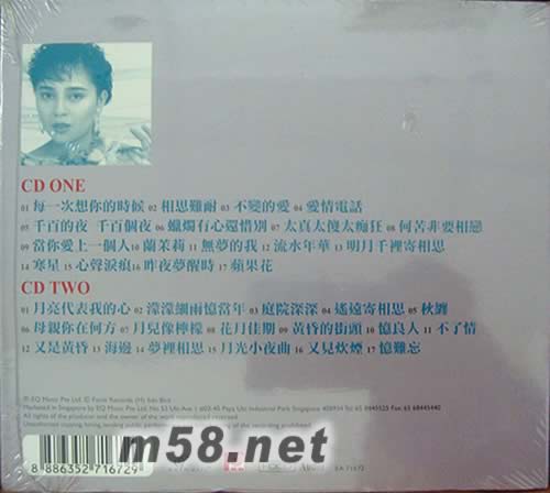 CD ONE 01. 每一次想你的時候 02. 相思難耐 03. 不變的愛 04. 愛情電話 05. 千百的夜 千百個夜 06. 蠟燭有心還惜別 07. 太真太傻太癡狂 08. 何苦非要相戀 09. 當你愛上一個人 10. 蘭茉莉 11. 無夢的我 12. 流水年華 13. 明月千里寄相思 14. 寒星 15. 心聲淚痕 16. 昨夜夢醒時 17. 蘋果花 CD TWO 01. 月亮代表我的心 02. 蒙蒙細雨憶當年 03. 庭院深深 04. 遙遠寄相思 05. 秋纏 06. 母親你在何方 07. 月兒像檸檬 08. 花月佳期 09. 黃昏的街頭 10. 憶良人 11. 不了情 12. 又是黃昏 13. 海邊 14. 夢里相思 15. 月光小夜曲 16. 又見炊煙 17. 憶難忘