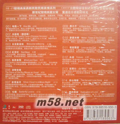 01 吻我一下 4:50 02 念親恩(國語版) 4:15 03 北京歡迎你 4:49 04 紅豆紅 5:38 05 風雨兼程 4:21 06 濤聲依舊 4:53 07 彩云追月 4:13 08 化蝶 4:10 09 黑小子 3:50 10 夢里水鄉 5:10 11 電話情思 4:46 12 永遠 4:20 13 走西口 4:45 14 茶山情歌 4:30 15 愛的奉獻4:35