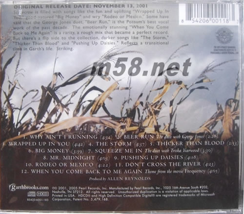 1. Why Ain't I Running 2. Beer Run (duet with George Jones) 3. Wrapped Up In You 4. The Storm 5. Thicker Than Blood 6. Big Money 7. Squeeze Me In (duet with Trisha Yearwood) 8. Mr.Midnight 9. Pushing Up Daises 10. Rodeo Or Mexico 11. Don't Cross The River 12. When You Come Back To Me Again