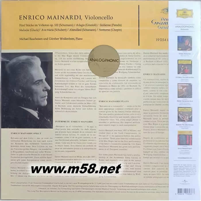 麥納迪大提琴小品名演集 PLAYS SCHUMANN, GRAZIOLI, PARADIS, SCHUBERT, CHOPIN 180g 33RPM LP 黑膠專輯背面圖片
