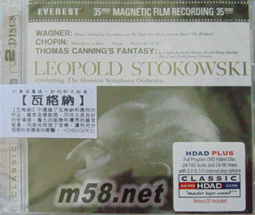 Wagner 瓦格納 HDAD(m58.net) What is a 24/96 DVD & 24/192 DVD-A? It is a High Quality 24/96 DVD & 24/192 DVD-A Hybrid Digital Audio Disc (HDAD) (Audio-ONLY DVD!) which features both 24-bit/96kHz and 24-bit/192kHz digital sampling rates. This disc is a two sided DVD based disc. One side of the disc is DVD video formatted and contains 24/96 PCM data playable on all DVD video players. The other side contains 24/192 PCM data and is playable on DVD audio players.
