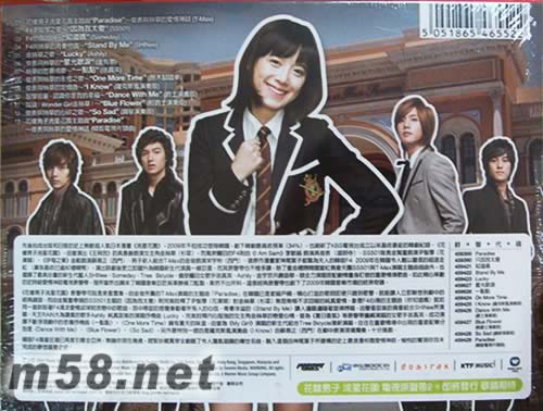 01 ”花樣男子流星花園主題曲”Paradise”~ 俊表與絲草的愛情神話 (T-Max) 02 F4尹智厚之歌 ~ “因為我太傻”(SS501) 03 F4戀曲2009 ~ “知道嗎” (Someday) 04 F4與絲草的青春戀曲Stand By Me (SHINee) 05 金絲草之歌 “Lucky” (Ashily) 06 俊表與絲草的星光眼淚 (金有景) 07 絲草的思慕情歌 “一點點” (徐真英) 08 俊表與絲草的永恆之歌 ~ One More Time” (原木腳踏車) 09 俊表與絲草的定情曲 ~ I Know (薩克斯風演奏版) 10 智厚前輩, 認識你是我的幸福 ~Dance With Me (爵士演奏版) 11 加油!”Wonder Girl 金絲草! ~ Blue Flower (輕爵士演奏版) 12 俊表與絲草的心碎之歌 So Sad (鋼琴演奏版) 13 ”花樣男子流星花園主題曲”Paradise” 俊表與絲草的愛情神話 (韓版電視片頭曲)