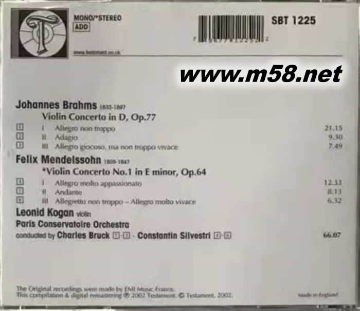 BRAHMS MENDELSSOHN 布拉姆斯 孟德爾松 小提琴協奏曲(m58.net) 崗 小提琴 / BRUCK指揮 法國音樂院管弦樂團 俄羅斯小提琴大師傳世名版 黃金陣容組合,絕對珍藏 英國原裝進口; EMI原廠音源精心轉製