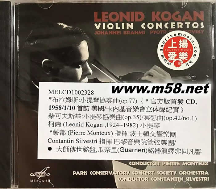 Violin Concertos 布拉姆斯/ 柴可夫斯基: 小提琴協奏曲/ 浪漫曲(m58.net) Leonid Kogan, Boston Symphony Orchestra, Pierre Monteux, Paris Conservatory Concert Society Orchestra, Constantin Silvestri、 布拉姆斯:小提琴協奏曲(官方版首度CD化!!) /*柴可夫斯基: 小提琴協奏曲/ 浪漫曲(op.42, No.1) 柯崗 (Leonid Kogan)小提琴 蒙都(Pierre Monteux)指揮 波士頓交響樂團 *Contantin Silvestri 指揮 巴黎音樂院管弦樂團 俄羅斯小提琴大師傳世名版 俄羅斯原裝進口,原廠母帶精心轉製