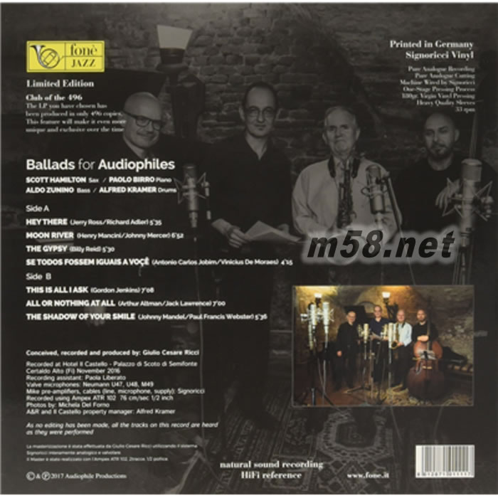極致經典盤Ballads for Audiophiles 爵士四重奏 薩克斯、鋼琴、大提琴、鼓 黑膠(m58.net)