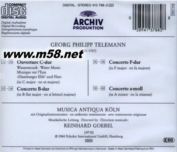 01 - Musica Antiqua Koln & Reinhard Goebel - Ouverture C-Dur- 1. Ouverture 02 - Musica Antiqua Koln & Reinhard Goebel - Ouverture C-Dur- 2. Sarabande. Die schlafende Thetis 03 - Musica Antiqua Koln & Reinhard Goebel - Ouverture C-Dur- 3. Bourree. Die erwachende Thetis 04 - Musica Antiqua Koln & Reinhard Goebel - Ouverture C-Dur- 4. Loure. Der verliebte Neptunus 05 - Musica Antiqua Koln & Reinhard Goebel - Ouverture C-Dur- 5. Gavotte. Die spielenden Najaden 06 - Musica Antiqua Koln & Reinhard Goebel - Ouverture C-Dur- 6. Harlequinade. Der scherzende Tritonus 07 - Musica Antiqua Koln & Reinhard Goebel - Ouverture C-Dur- 7. Der Sturmende Aeolus 08 - Musica Antiqua Koln & Reinhard Goebel - Ouverture C-Dur- 8. Menuet. Der Angenehme Zephir 09 - Musica Antiqua Koln & Reinhard Goebel - Ouverture C-Dur- 9. Gigue. Ebbe Und Flut 10 - Musica Antiqua Koln & Reinhard Goebel - Ouverture C-Dur- 10. Canarie. Die Lustigen Bootsleute 11 - Musica Antiqua Koln & Reinhard Goebel - Concerto B-Dur- 1. Andante 12 - Musica Antiqua Koln & Reinhard Goebel - Concerto B-Dur- 2. Presto 13 - Musica Antiqua Koln & Reinhard Goebel - Concerto B-Dur- 3. Cantabile 14 - Musica Antiqua Koln & Reinhard Goebel - Concerto B-Dur- 4. Allegro 15 - Musica Antiqua Koln & Reinhard Goebel - Concerto F-Dur- 1. Grave 16 - Musica Antiqua Koln & Reinhard Goebel - Concerto F-Dur- 2. Vivace - Attacca 17 - Musica Antiqua Koln & Reinhard Goebel - Concerto F-Dur- 3. Adagio 18 - Musica Antiqua Koln & Reinhard Goebel - Concerto F-Dur- 4. Allegro 19 - Musica Antiqua Koln & Reinhard Goebel - Concerto A-Moll- 1. Adagio 20 - Musica Antiqua Koln & Reinhard Goebel - Concerto A-Moll- 2. Allegro 21 - Musica Antiqua Koln & Reinhard Goebel - Concerto A-Moll- 3. Affettuoso 22 - Musica Antiqua Koln & Reinhard Goebel - Concerto A-Moll- 4. Allegro