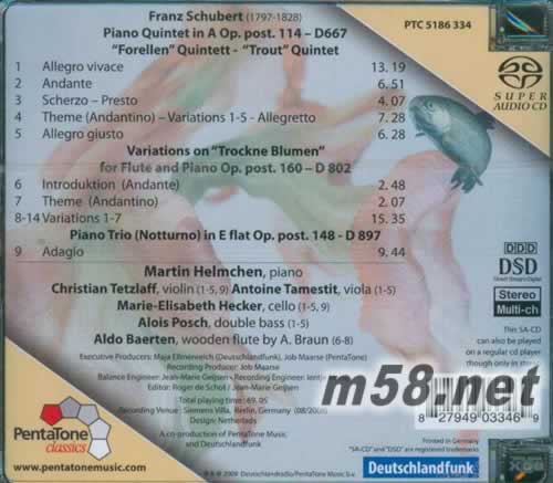 鱒魚五重奏 鋼琴三重奏 長笛與鋼琴變奏曲 SACD(m58.net) 鋼琴家:Martin Helmchen 小提琴家:Christian Tetzlaff 中提琴家:Antoine Tamestit 大提琴家:Marie-Elisabeth Hecker 低音提琴:Alois Posch
