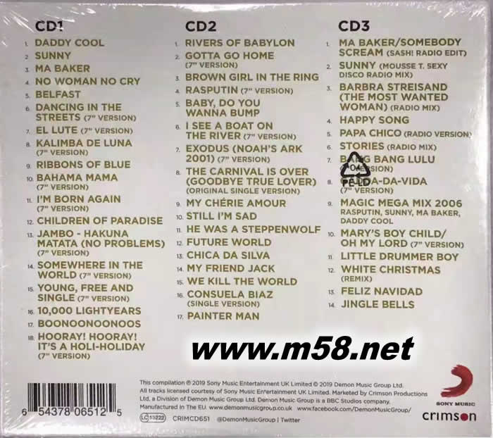 Boney M - Gold 迪斯科演唱組(m58.net) 前西德的 Boney M 迪斯科演唱組是70 - 80年代非常成功和重要的迪斯科演唱組合之一,代表作有Rivers Of Babylon(巴比倫河), Brown Girl In The Ring等。Boney M 在德國的第一次亮相是在1976年的一臺最重要、最著名的電視表演秀“Musikladen”中演唱了歌曲《爸爸真酷》(Daddy cool)。自那以后,Boney M 的周單曲銷量高達十萬張。1978年,Boney M 演唱的《巴比倫河》和《戴戒指的褐發女孩》的演唱在歐洲樂壇引起巨大轟動,單曲銷量創下了英國唱片史上的記錄。