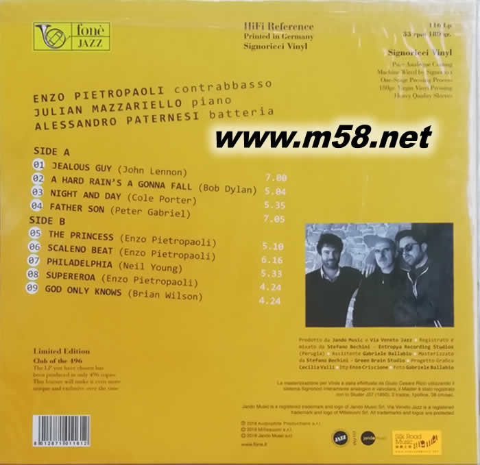 [公主]爵士三重奏((吉它、鋼琴、鼓)Pietropaoli,Mazzariello ,Paternesi [The Princess]大提琴、鋼琴、鼓 黑膠 限量版專輯背面圖片