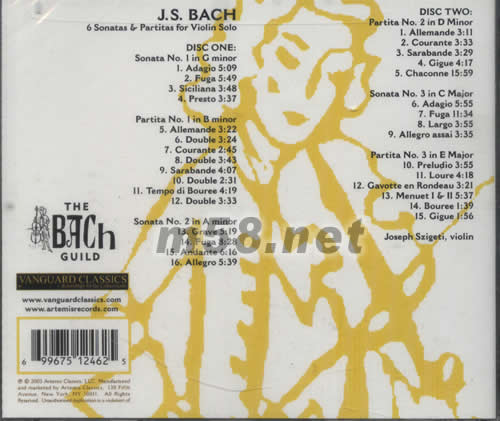JOSEPH SZIGETI 6 SONATAS PARTITAS FOR VIOLIN SOLO專輯背面圖片