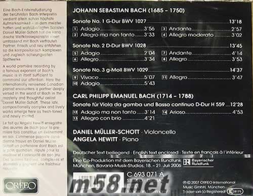 價格為估,以實到貨為準! 巴赫 大提琴奏鳴曲(m58.net) 巴赫:3首大提琴奏鳴曲 安琪拉赫維特 鋼琴/ 丹尼爾 大提琴 *詮釋巴哈作品最佳新生代組合 *德國原裝進口; 原廠母帶精心轉製