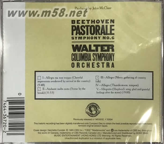 貝多芬:第6交響曲 瓦爾特 (報(bào)紙版)PASTORALE 劉漢盛推介(m58.net) 劉漢盛發(fā)燒榜單100之62 貝多芬:第六號(hào)交響曲華爾特指揮哥倫比亞管弦樂團(tuán) CBS MYK36720-專測交響曲之二 入選原因: 貝多芬第六號(hào)交響曲的版本何其多,但是,如果您沒有華爾特的這張,那么您肯定失落了珍貴的寶貝。為什么?因?yàn)槿A爾特的詮釋讓人感受到最恬靜、最圓融的「田園」。而且,這張「田園」的錄音也是經(jīng)典中的經(jīng)典,管弦樂的和諧程度充分達(dá)到了「交響」的精義。它完全沒有突刺,完全沒有壓迫感,音質(zhì)與音色的美就這樣淡淡的表露出來。聽過這張CD,我相信您已經(jīng)學(xué)習(xí)到如何去判別好的管弦樂錄音。最后附帶一句:購買時(shí)請(qǐng)認(rèn)明這個(gè)封面,這是美國版的。 難關(guān): 假若您聽了這張CD覺得平淡無味,那么您的音響系統(tǒng)就真的無味極了。假若您聽不到弦樂的美妙質(zhì)感,那么您的音響系統(tǒng)肯定欠缺質(zhì)感的表現(xiàn)。假若您聽了認(rèn)為音質(zhì)不甜美,那么您所有的CD聽來一定也不會(huì)甜美。假若您聽來覺得低頻沒有彈性,那么我保證您的音響系統(tǒng)低頻有問題。假若您聽來覺得太瘦不豐潤,當(dāng)然,您的音響系統(tǒng)的確聲音太瘦了,而只要聲音一瘦,音響效果就完蛋了。