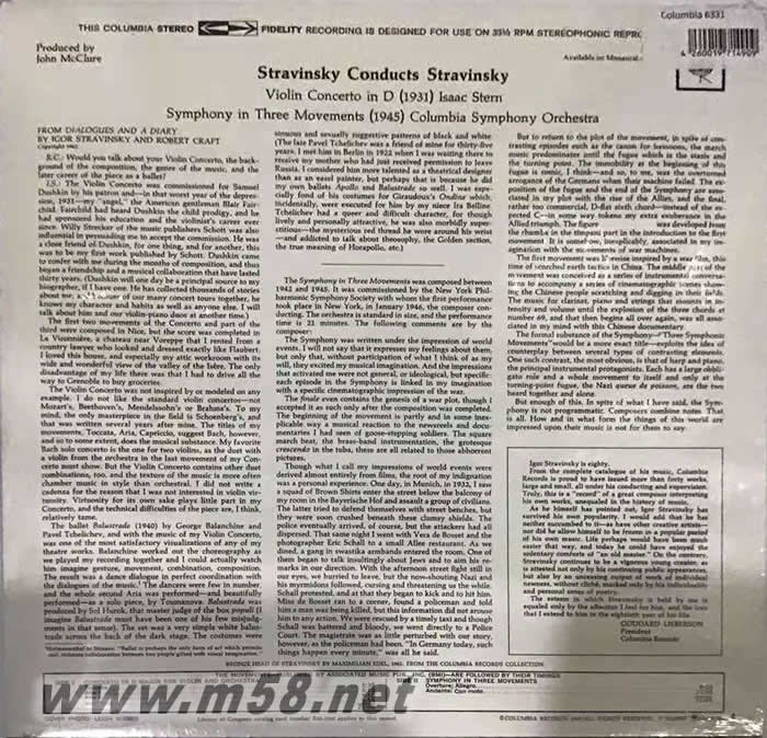 斯特恩 小提琴 - 斯特拉文斯基 小提琴協奏曲 180g 33RPM LP 黑膠(m58.net)