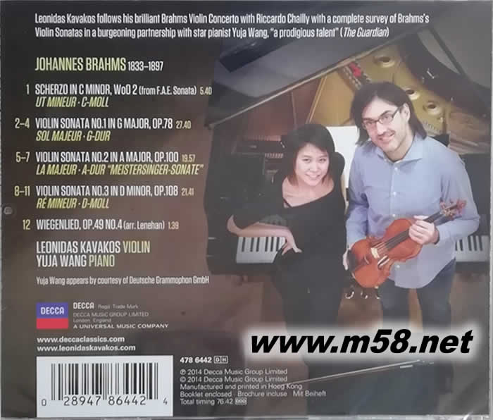 勃拉姆斯 三首小提琴奏鳴曲BRAHMS THE VIOLIN SONATAS 小提琴與鋼琴(m58.net) 小提琴家卡瓦柯斯是古典音樂圈中少見的希臘音樂家,在希臘音樂院畢業后,拿了歐納西斯獎學金前往美國投入印地安那大學名師金戈爾德門下。2013年四十五歲的他,在樂壇其實早已小有名氣,也灌錄過多張唱片,尤其是他在十八歲時,贏得芬蘭赫爾辛基西貝流士小提琴大賽首獎,是該賽有史以來最年輕的金牌得主,讓他揚名國際。之后又在二十一歲時,同一年內贏得諾姆堡大賽和帕格尼尼大賽金牌,更加穩固了在樂壇的地位。