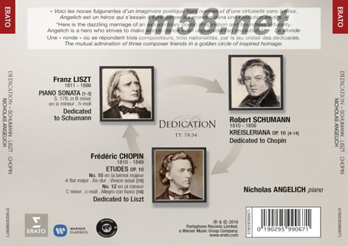 美國鋼琴家安杰利希把這張專輯獻給舒曼、李斯特與蕭邦這三位年齡相近的浪漫樂派偉大作曲家。專輯標題「迴旋舞」的源由,來自隱藏在這些曲目背后,三名音樂家間惺惺相惜的逸事:舒曼把《克萊斯勒魂》題獻給蕭邦,蕭邦則把作品10里的兩首練習曲題贈給李斯特。而李斯特著名的B小調奏鳴曲題獻給舒曼。