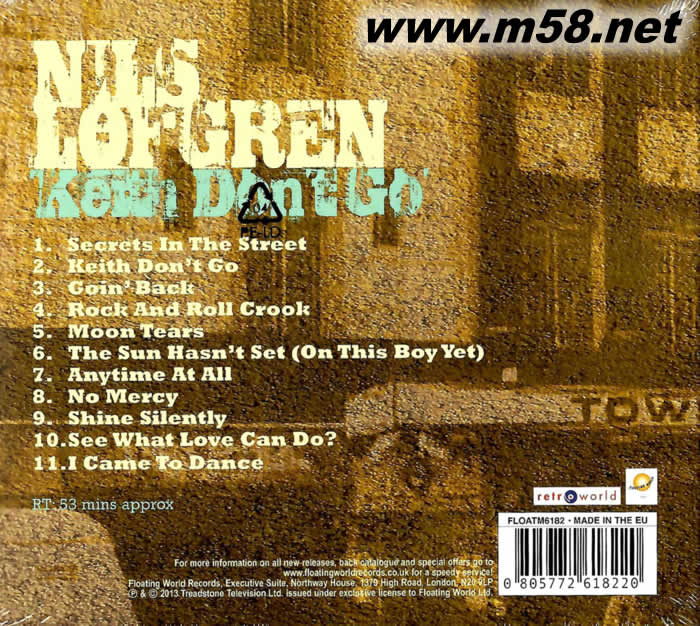 尼爾斯洛夫格林 1990年在倫敦城鄉俱樂部現場演唱會 Keith Don't Go – Live at the Town & Country Club, London 1990(m58.net) 尼爾斯·洛夫格倫(NILS LOFGREN)曾與一些音樂界的大牌人物一起演奏和表演,包括林戈·斯塔爾(RINGO STARR)、布魯斯·斯普林斯汀(BRUCE SPRINGSTEEN)和尼爾·楊(NIEL YOUNG)等等。 他同時也開創了一個成功的獨奏生涯。這一集于1990年在倫敦城鄉俱樂部錄制,洛夫格倫在他的一些經典曲目中表現最好。在此之前,他剛剛回來,與布魯斯·斯普林斯汀合作非常成功。這一驚人的現場表演已經從最初的電視錄音中以數字方式重新掌握,現在首次以音頻形式發布。