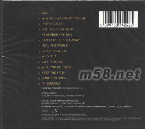 DANGEROUS SPECIAL EDITION 超值珍藏版專輯背面圖片