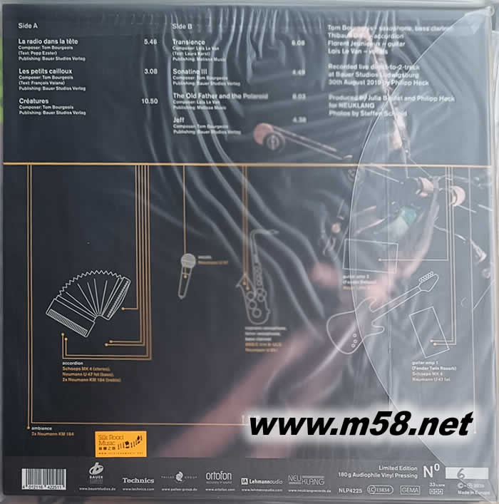 (AAA立體聲VOL.44)湯姆 布爾喬瓦、蒂博‧蒂爾、弗洛朗 朱尼奧斯及路易斯 樂 范 Studio Koncert Tom Bourgeois 爵士 黑膠 限量版專輯背面圖片