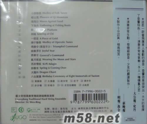 廣東小曲(m58.net) 最高水準錄音技術制成,音響效果有前無古人的驚訝程度,錄的是傳統正宗的廣東小調,這一個錄音可譽為有史以來最靚的廣東小曲. --發燒音響/LED 這一輯小曲乃系比較熱鬧傳統廣東樂曲.錄音水準系上上這選.八位演奏名家位置型活動現眼前,近真到你唔信. --星島晚報 這是一款會為廣東人鼓欠的錄音,音響效果很突出,大的發揮了音響特色.....演奏非常有氣勢.予人一種懷舊地重之思. --大公報/史丹 演奏非常生動,發燒級錄音,少見的制作. --新晚報 制作十分認真,極為悅耳 --明報/魯金