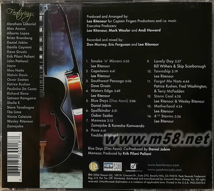 1 Smoke 'n' Mirrors 2 Capetown 3 Southwest Passage 4 Waters Edge 5 Blue Days (Dias Azuis) 6 Spellbinder 7 Memeza 8 Povo 9 Lovely Day 10 Township 11 Forget Me Nots 12 Stone Cool 13 Motherland 14 4½ Storms