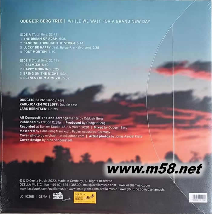 當我們等待新的一天 While We Wait For A Brand New Day (鋼琴、大提琴、鼓) 爵士三重奏 黑膠(m58.net) Oddgeir Berg Trio - Oddgeir Berg (鋼琴) Karl-Joakim Wisløff (低音大提琴) Lars Berntsen (鼓) 1. 由挪威爵士樂鋼琴手奧德蓋‧伯格(Oddgeir Berg)為主導,聯(lián)袂低音大提琴手卡爾-約阿金·韋斯洛夫(Karl-Joakim Wisløff)和鼓手拉斯·伯恩森(Lars Berntsen所組成的「德蓋‧伯格三重奏(Oddgeir Berg Trio)」是現(xiàn)今歐洲最炙手可熱的爵士樂隊,他們?nèi)送浅錾臉肥郑嘶钴d於錄音室錄音製作時的演奏外,亦經(jīng)常為北歐的著名樂手音樂會現(xiàn)場的演出,技術之高,可見一斑。 2. 三位樂手挾著出色的演奏技術和豐富的演出經(jīng)驗,被邀作公開演出頻繁,而他們已出版的三張專輯,更獲得好評如潮,使他們在歐洲樂壇的地位更進一步,更受歡迎。在此情況下,他們推出最新專輯「當我們等待新的一天(While We Wait For A Brand New Day)」,樂隊演奏了九首全是伯格的精心創(chuàng)作。伯格創(chuàng)作這些歌曲時剛好是新型冠狀病毒疫情最嚴重的時候,他經(jīng)歷了當時整個社會的動盪,由恐慌到勇敢面對,繼而希望新的一天會找到曙光,每首歌曲都充滿正能量。 3. 伯格的鋼琴彈奏美妙靈動,跳躍的音符卻予人有平滑恬靜的感覺。韋斯洛夫的低音大提琴如影隨形,如泣如訴般相伴。伯恩森的擊鼓振動出徐疾有致的節(jié)奏,輕柔地如喁喁細語般與鋼琴和低音大提琴對話,令人回味無窮。 4. 人生必有起伏,身處低潮時,大都希望新的一天會帶來轉機,如能聆聽到一些令人充滿希冀的樂曲會是心理解窘的良方,伯格譜寫出這些歌曲,相信能符合這方面的要求。 5. 此專輯以33 1/3轉,180克金屬直刻母盤壓製的黑膠唱片為載體,盡顯淳美飽滿音質,樂器定位清晰明確,表現(xiàn)細膩完整,是爵士美樂名盤之一。