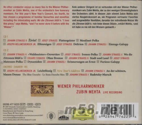 2007 NEW YEAR S CONCERT 維也納新年音樂會(m58.net) 2007維也納新年音樂會 一年一度金色大廳音樂圣宴 美國肯尼迪中心榮譽(yù)得獎指揮 梅塔Zubin Mehta再度率領(lǐng)維也納愛樂演繹 18首史特勞斯嫡系華爾茲名作