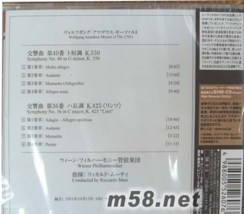 Mozart: Symphonies Nos. 40 & 36 (SHM-CD系列日本版)(m58.net) 錄音于:1991年 指揮;RICCARDO MUTI
