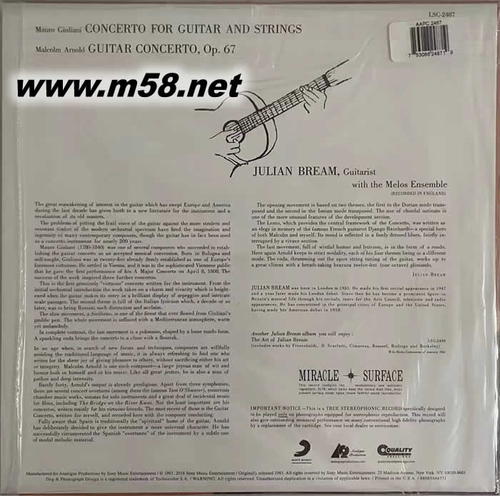 布里姆 吉他協奏曲 Guitar Concertos TAS專業推薦發燒名盤180g 33RPM LP 黑膠(m58.net) 2018年正是吉他大師Julian Bream (布林姆) 八十五大壽,Blue Moon 推出其兩張專輯,更一碟落齊,正好回味一下,包括上榜天碟Guitar Concertos (吉他協奏曲) 及獨奏吉他上乘作品The Art of (吉他的藝術)。富有感染力的吉他掃弦,游刃有余的顫音,被改編為吉他曲目作品,魅力不衰,演繹得令聽者如醉如癡,時而緊繃的感覺,時而豪邁的情懷,柔腸百轉,思緒潺潺,大師的吉他絕技,展現絕代指尖風華。