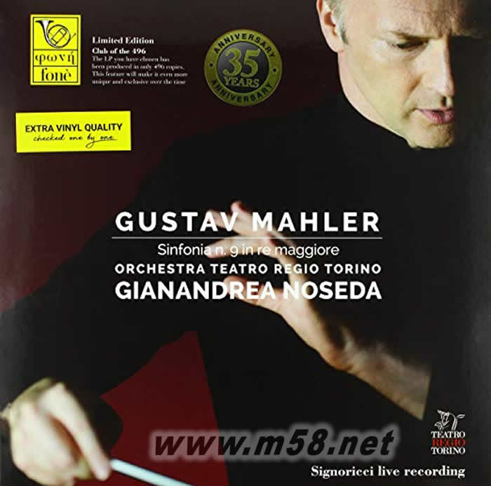 1. 榮獲2015年度美洲音樂指揮獎(Musical America's Conductor of the Year 2015)及2016年度國際歌劇指揮獎(International Opera Awards Conductor of the Year 2016)的美國著名指揮家詹尼安德烈.諾斯達(Gianandrea Noseda)于2015年帶領意大利都靈皇家劇院交響樂團及合唱團(Orchestra E Coro Teatro Regio Torino)灌錄馬勒的傳世名作[C小調第二交響曲"復活"(Mahler: Sinfonia n.2 in do minore "Resurrezione" )]獲得空前成功,他與交響樂團繼續合作,演繹馬勒最后的曠世名作[D大調第九交響曲(Mahler: Sinfonia nr.9 in re maggiore )],更具吸引力。