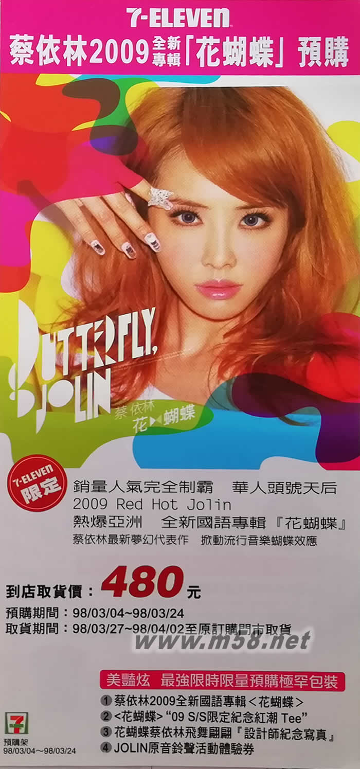 花蝴蝶 雙面 7-11 預購單(m58.net) 預購單尺寸:24*9.5CM 厚紙板夾寄