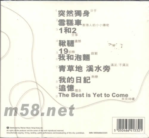 1、突然獨身 2、雪糕車 3、1和2 4、 5、19 6、我和泡面 7、青草地、溪水旁 8、我的日記 9、追憶 10、THE BEST IS YET TO COME