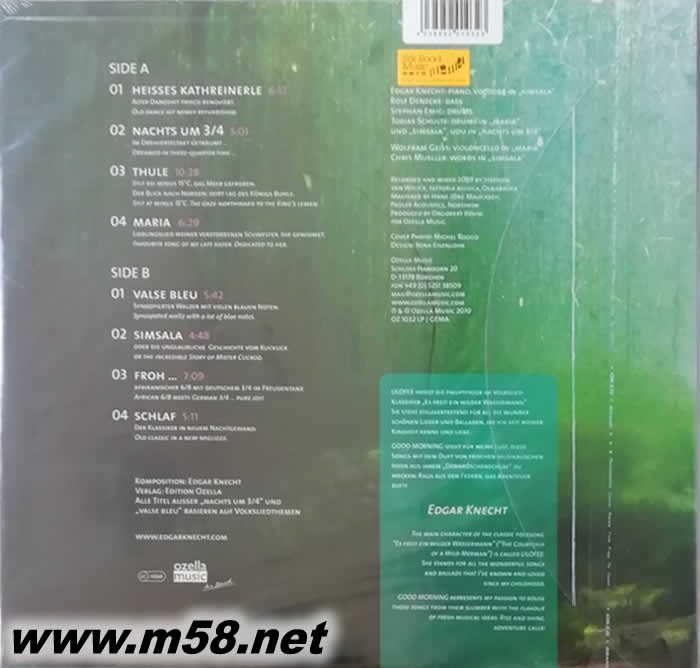 埃德加.尼赫特(Edgar Knecht)是德國現今最具音樂天份和創意的鋼琴爵士樂的演奏家和作曲家,他從14歲開始公開演奏自己的作品,獲得好評如潮,踏上青云之路,跟著獲獎無數,但他利用自己獨有的天才,以他的音樂作為親喜大使,到多國演出以傳遞友愛的信息。他曾為多部音樂劇、電影和電視紀錄片作曲和配樂,極受歡迎,而他最為人稱頌的是改編多首德國民歌以鋼琴爵士樂演奏並在古巴夏灣拿的爵士樂音樂節中大放異彩,贏得無盡掌聲和喝采。他伙拍著名的低音大提琴手羅爾夫‧丹歷克(Rolf Denecke)和鼓手斯蒂芬‧埃米格(Stephan Emig)和托比亞斯‧舒爾特(Tobias Schulte)組成的三重奏作經常性演出,因他們技術出眾,演奏樂曲旋律精潔動人,贏得樂迷一致讚賞。他們的新專輯【利洛費早晨(Good Morning Lilofee)】是以嶄新獨特的風格,嫻熟的默契演奏多首尼赫特的最新作品包括【Heisses Kathreinerle(海瑟斯‧卡夫連勒里)】,【Nachts Um 3/4(3/4夜)】,【Thule(圖勒)】,【Maria(瑪莉亞)】,【Valse Bleu(藍色圓舞曲)】,【Simsala(辛莎娜)】,【Froh(興奮)】和【Schlaf(睡覺)】等多首品味極高但又平易近人的精彩樂曲, 錄音製作由德國著名錄音師戴戈貝治.伯姆(Dagobert Böhm)精心泡製,而后期母盤由《老虎魚》操刀, 以180克處女膠唱片為載體, 音效達至完美水平,是另一鋼琴三重奏的黑膠示范盤。