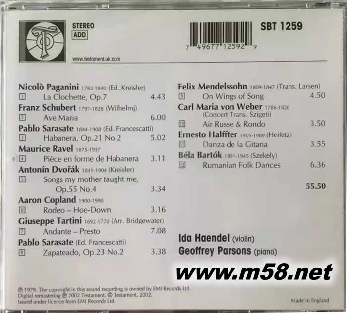 Popular Encores(m58.net) 小提琴女杰傳奇名盤(pán) 1982年獲得西貝流士獎(jiǎng),唯一一位在“文革”期間來(lái)華訪問(wèn)演出的西方職業(yè)獨(dú)奏家 EMI原廠立體聲音源;英國(guó)原裝進(jìn)口